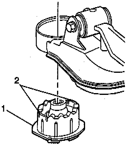 8.2. Tap the mount (1) downward and out of the support assembly.