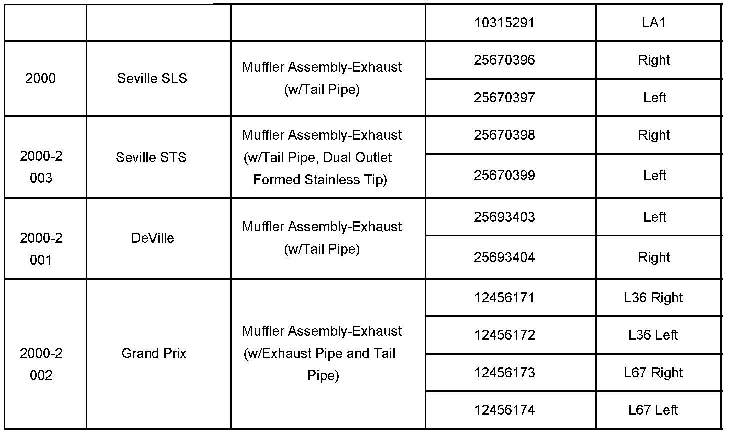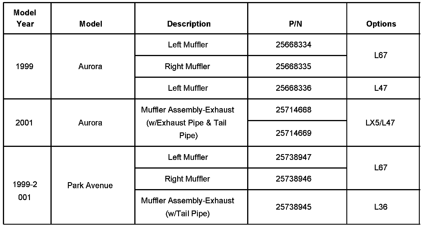 The purpose of this bulletin is to make available the part numbers for exhaust mufflers for service. Replacing only the exhaust muffler, instead of the complete exhaust system from the converter back, greatly reduces repair expenses.