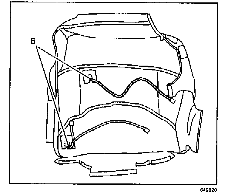 5. Cut off all of the old heat element harness (6) from the seat back trim cover.