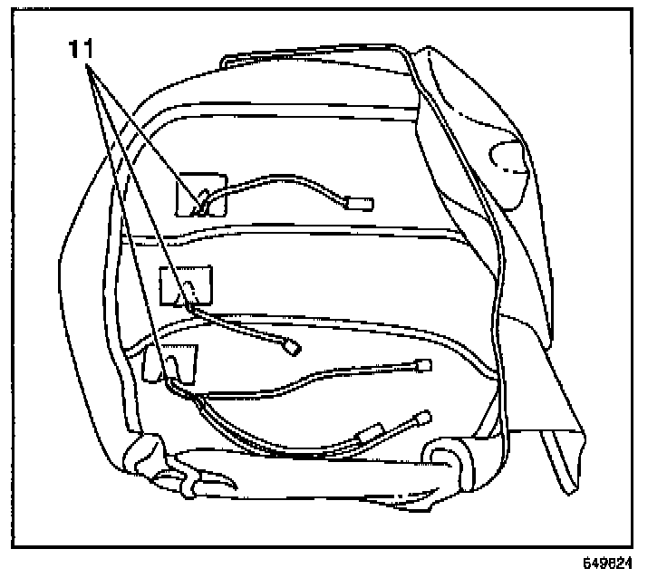 5. Cut off all of the old heat element harness (11) from the seat cushion trim cover.