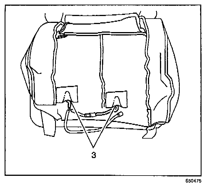 5. Cut off all of the old heat element harness (3) from the seat back trim cover.
