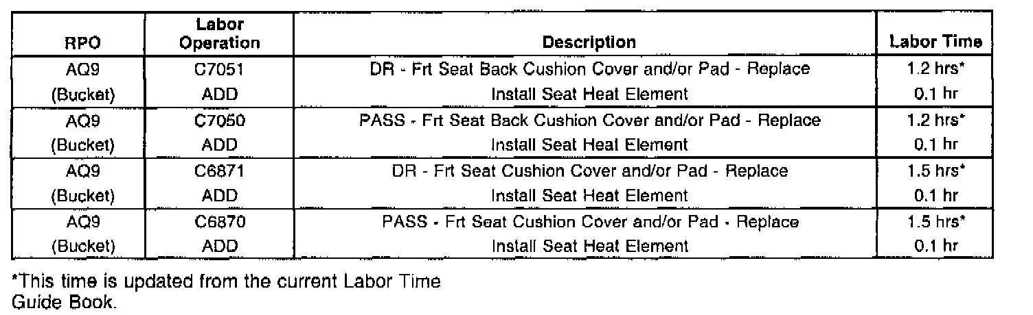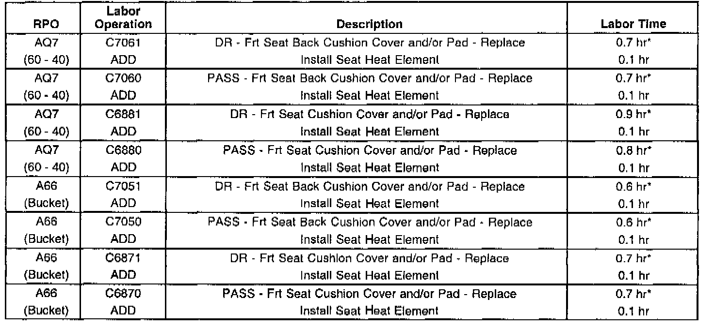 Front Seat Back and/or Seat Cushion Heat Element is Non-Functioning (Replace Seat Heat Element)