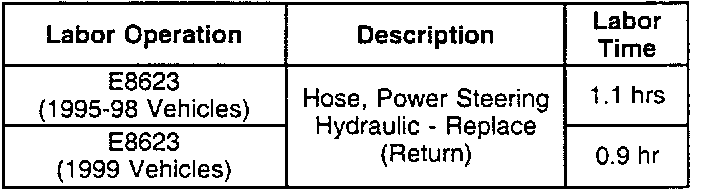 For 1995-1998 vehicles with a RH routed outlet hose assembly and for 1999 vehicles with a LH routed outlet hose assembly, install a LH routed anti-shudder Power Steering Outlet Hose Assembly, P/N 25728474.