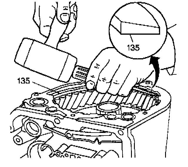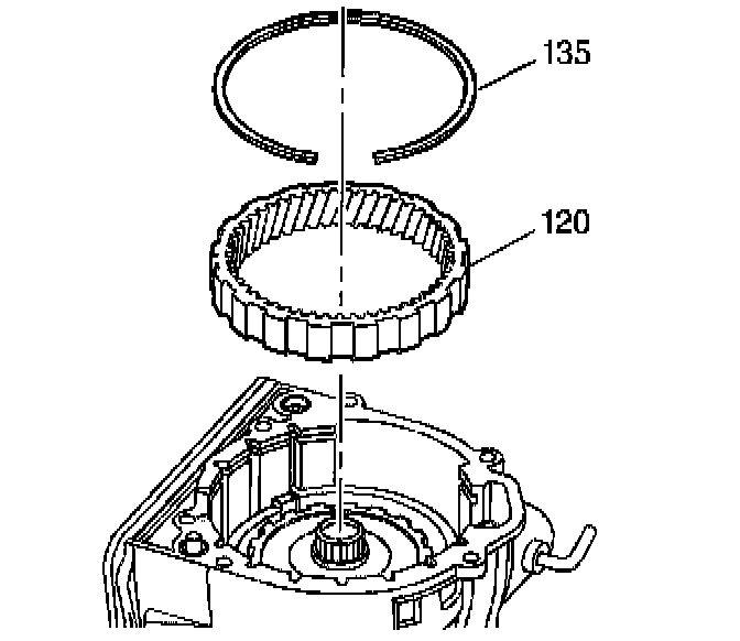 2. Install the internal gear snap ring (135) flat side down.