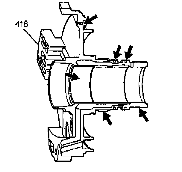 8. Air check the second clutch piston by applying air through the driven sprocket support (418).