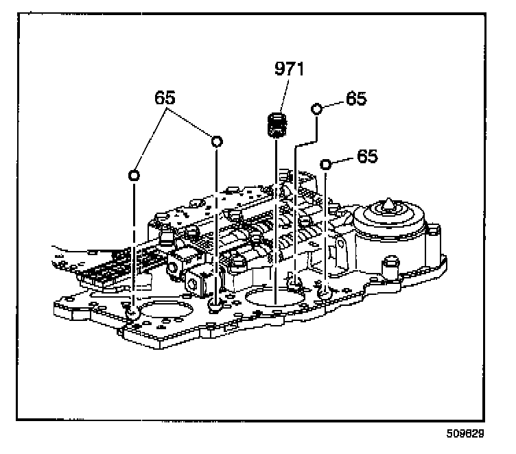 3. Remove the four checkballs (65) and remove the spring (971) from the channel plate.