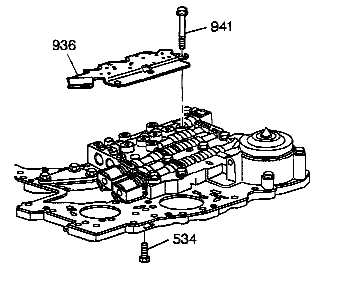 4. Remove the one 10-mm bolt (534) from the channel plate side and the six 10-mm bolts (941) from the automatic transmission fluid pressure manual valve position switch (936). Then remove the automatic transmission fluid pressure manual valve position switch (936).