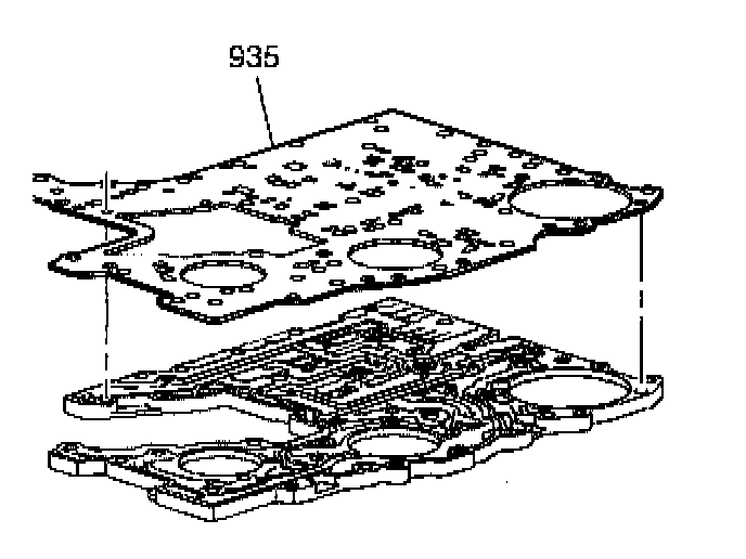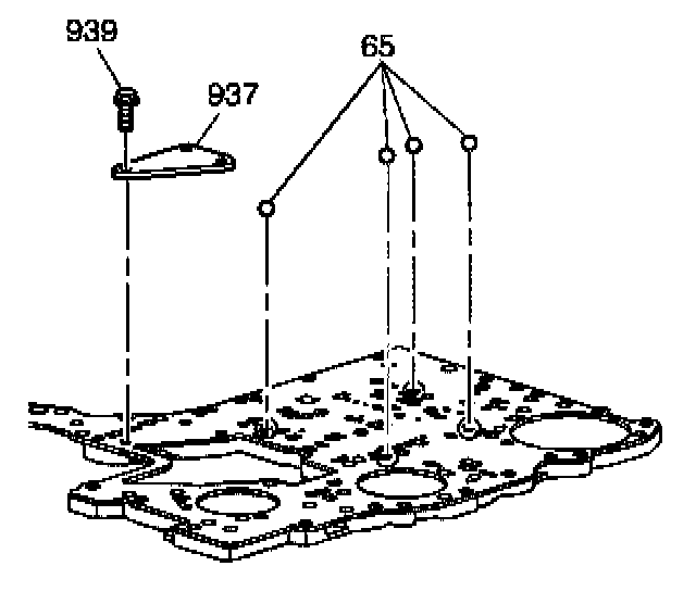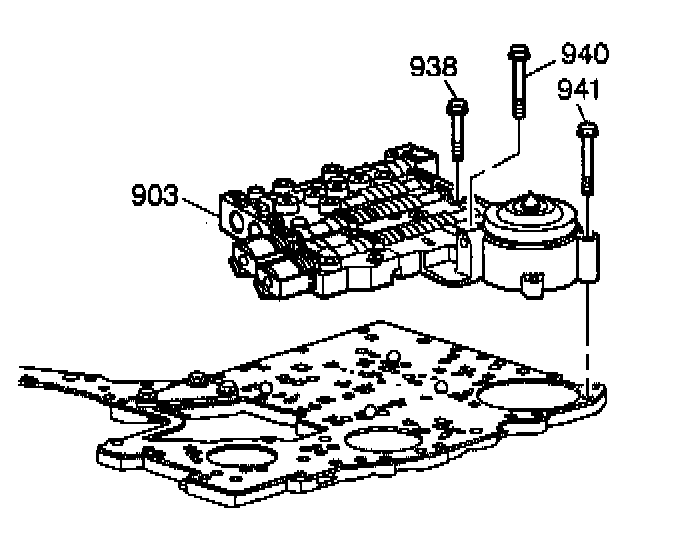5. Remove the nine remaining 10-mm bolts (938, 940, 941) from the lower control valve body. Remove the lower control valve assembly (903) from the channel plate.