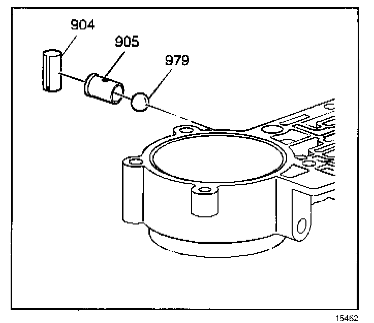1. Remove the Low/Reverse servo piston retaining ring (932). Push on the Low/Reverse apply pin (931) to remove the servo assembly.