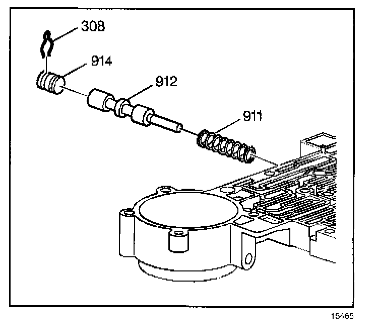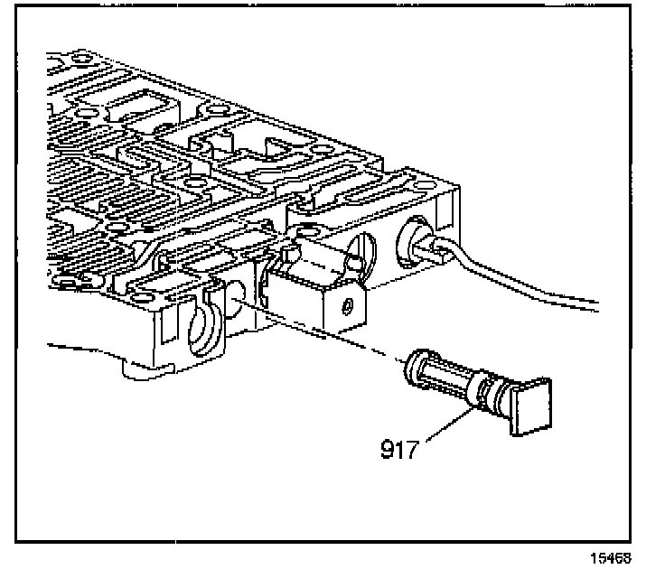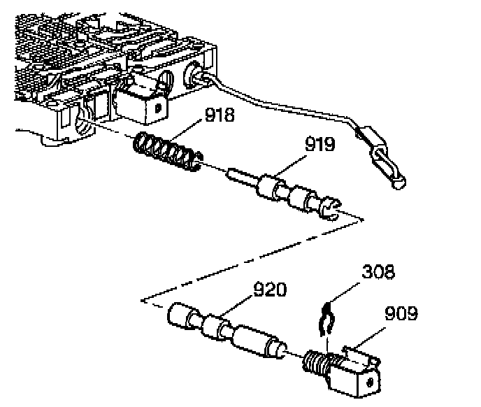 21. Remove the manual link and clip assembly (915) and remove the manual valve (916).