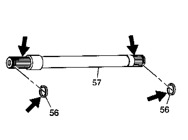1. Inspect the output shaft (57) splines for burrs or damage. Inspect the snap rings (56) for overexpansion.