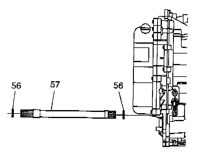 2. Install the snap rings (56) onto the output shaft and install the output shaft (57) from the channel plate side of the transmission.