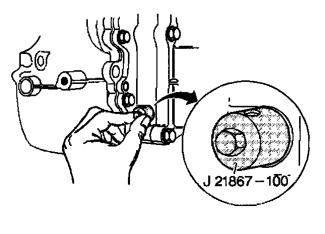 12. Remove J21867- 100 using a ratchet box wrench.