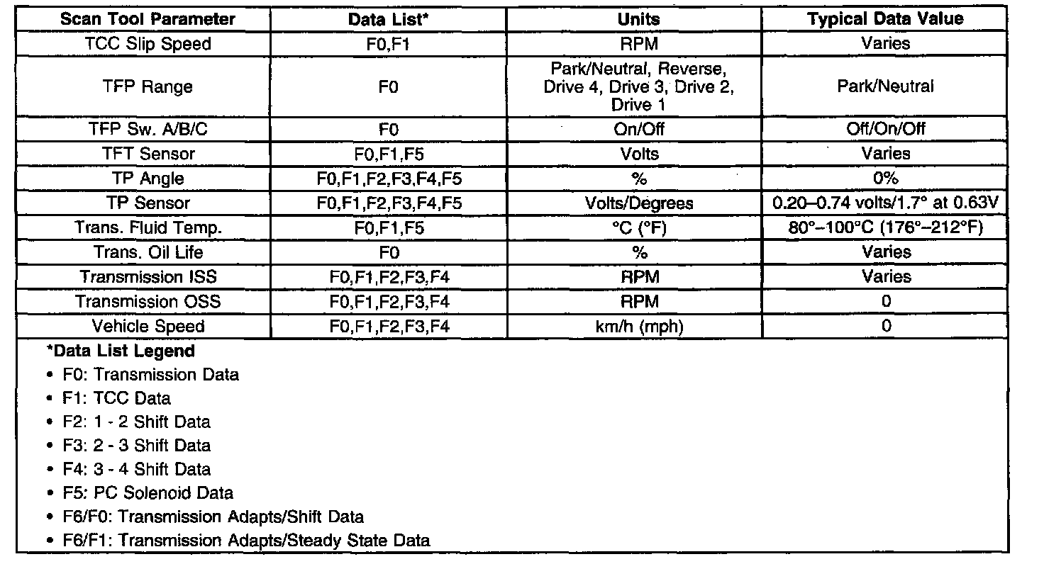 Transmission Scan Tool Data Values