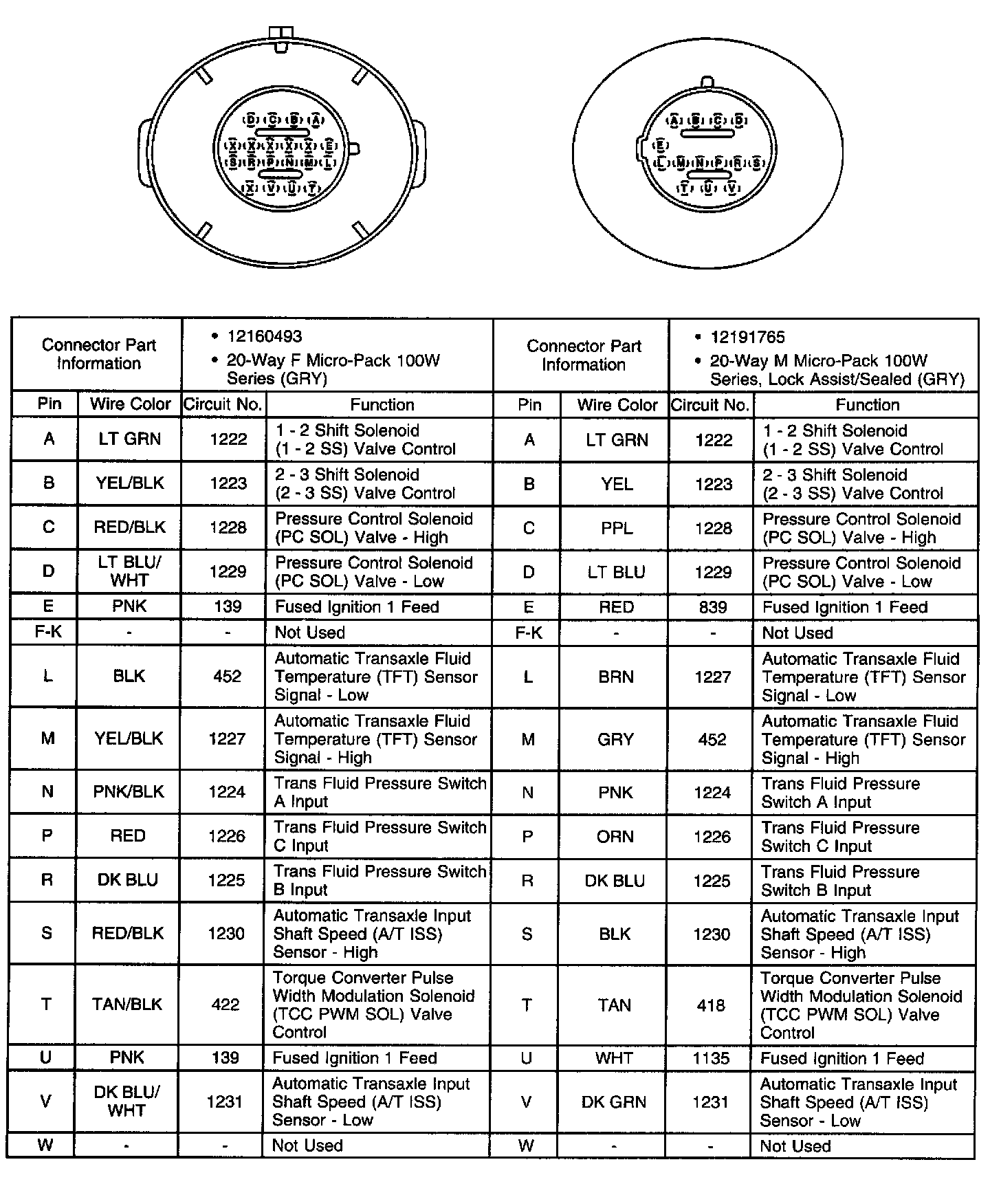 Torque Converter Clutch Pulse Width Modulated (TCC PWM) Solenoid Valve Connector, Wiring Harness Side