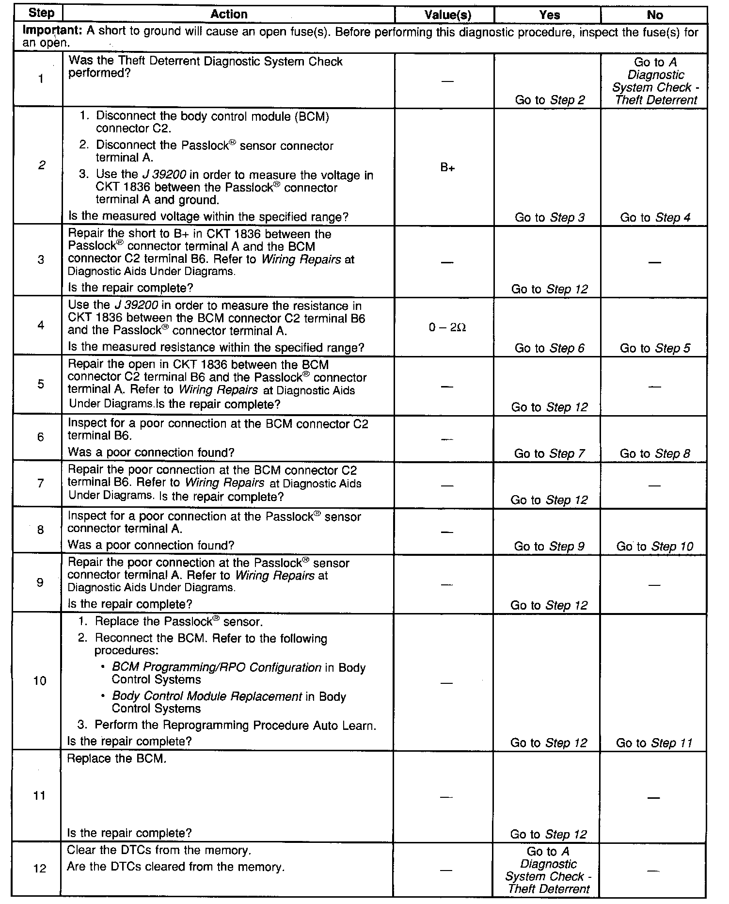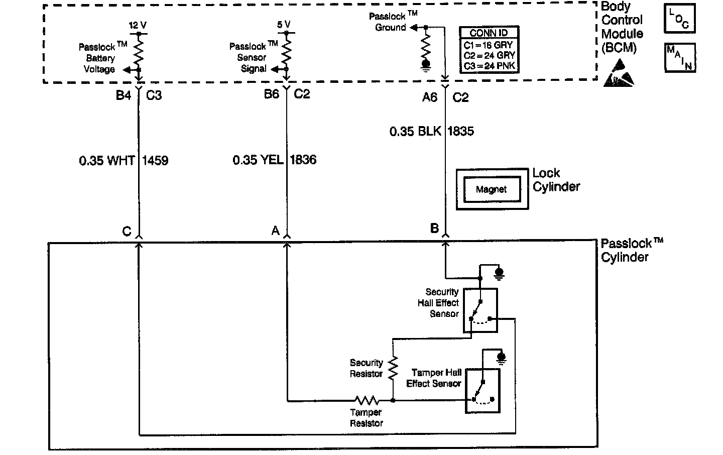 This circuit supplies the PasslockTM data to the body control module (BCM) from the PasslockTM sensor, CKT 1836.