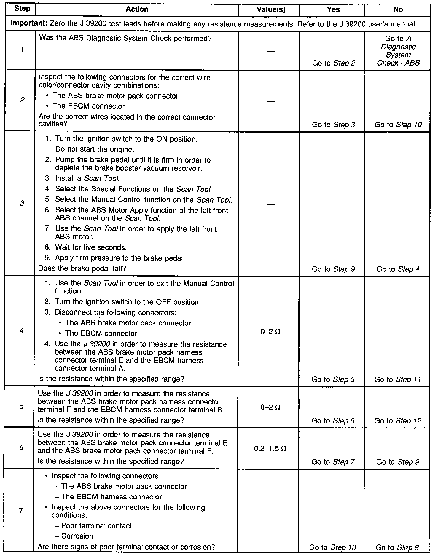 6. This test checks for excessive resistance in the right front motor.