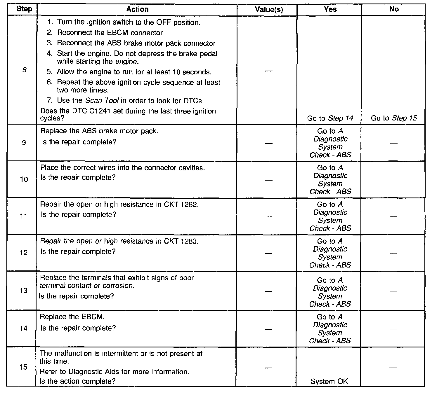 ^ The condition responsible for setting the DTC no longer exists and the Scan Tool Clear DTCs function is used.