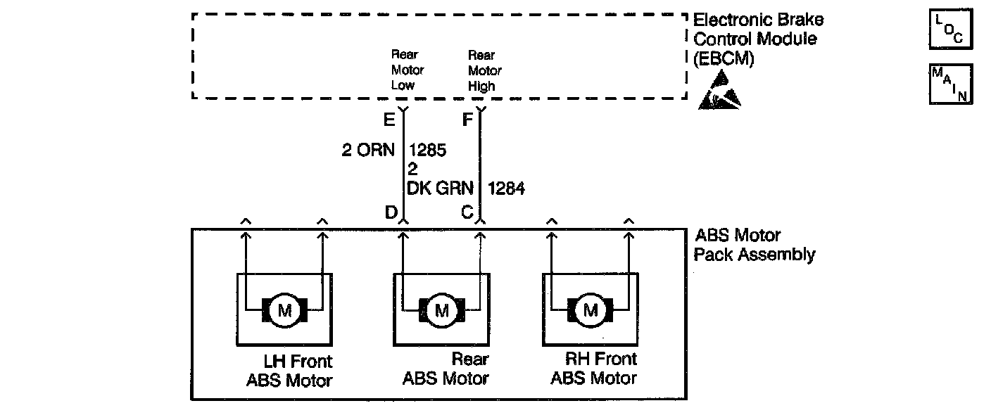 A malfunction exists if The EBCM detects an out of range voltage on either of the rear ABS motor circuits. An out of range voltage on either circuit indicates one of the following conditions: