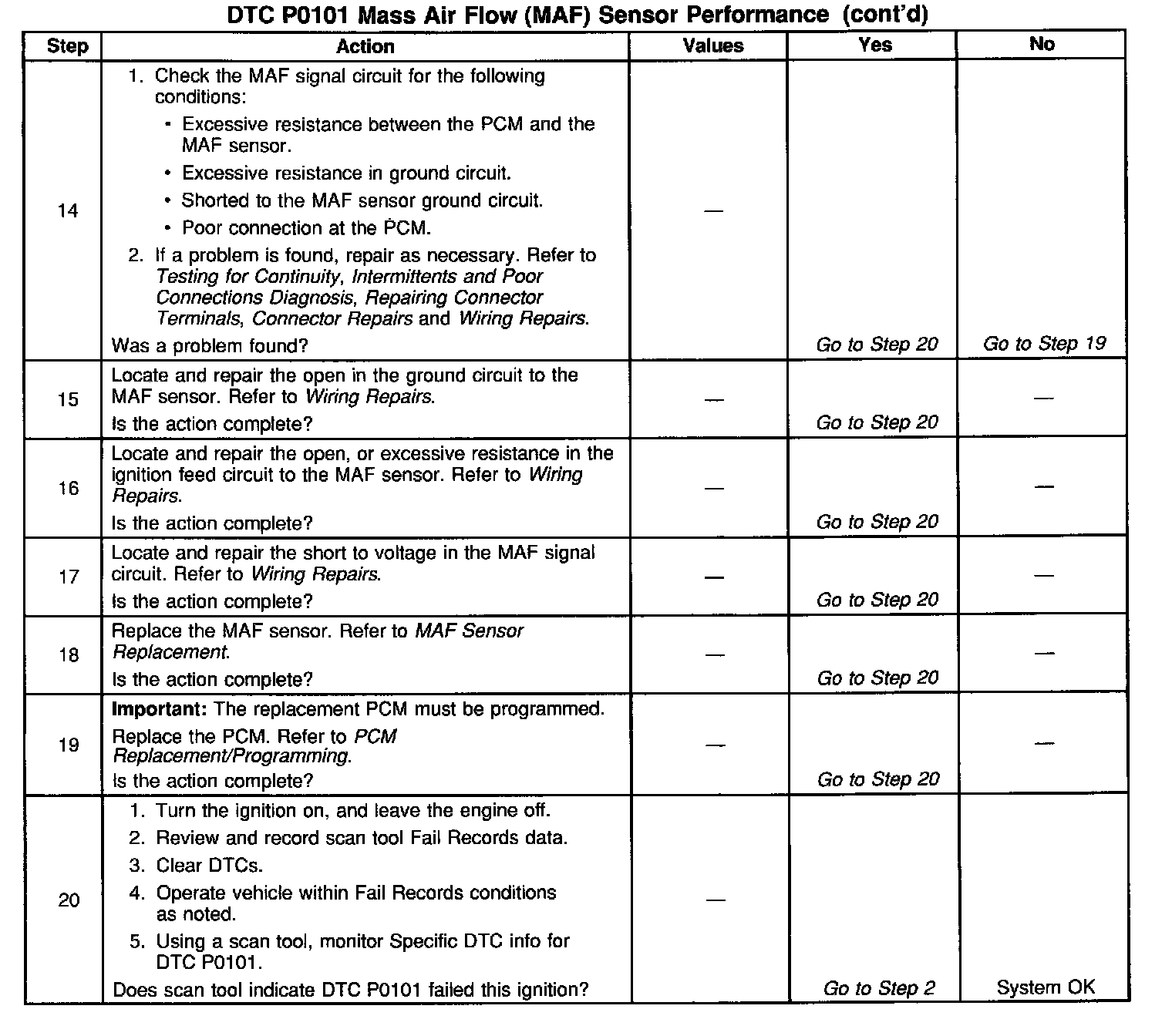 3. Only, if sent here from the Engine Cranks But Will Not Run, continue to follow diagnostic table even if DTC P0101 has NOT failed this ignition.