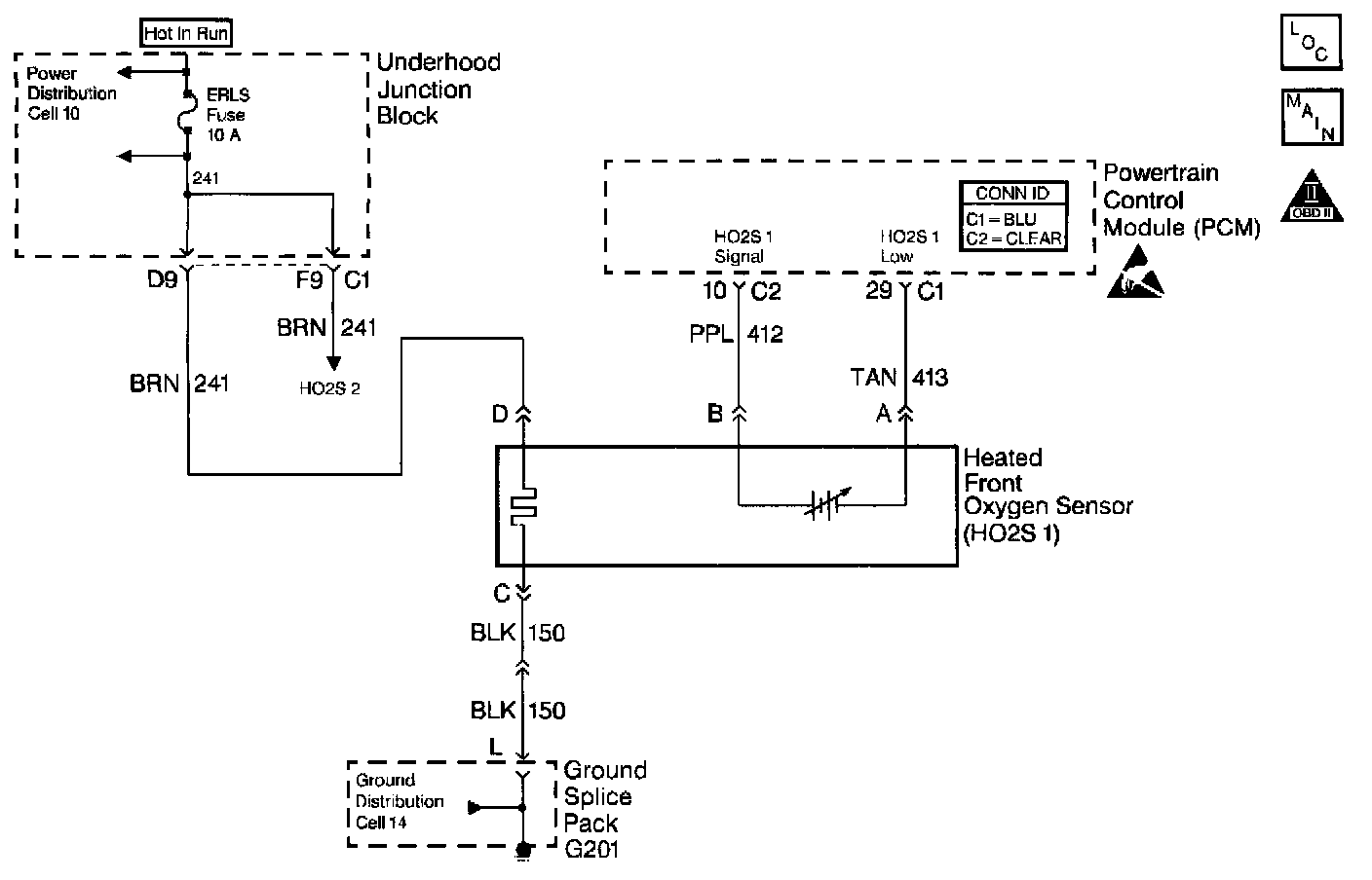 The PCM supplies a bias voltage of about 450 mV between the HO2S signal and low circuits. When measured with a 10 megaohm digital voltmeter, this may display as low as 350 mV. The Oxygen Sensor varies the voltage within a range of about 1000 mV when the exhaust is rich, down through about 100 mV when exhaust is lean. The PCM constantly monitors the HO2S signal during closed loop operation and compensates for a rich or lean condition by decreasing or increasing injector pulse width as necessary. If the HO2S 1 voltage remains excessively low for an extended period of time, DTC P0131 will be set.