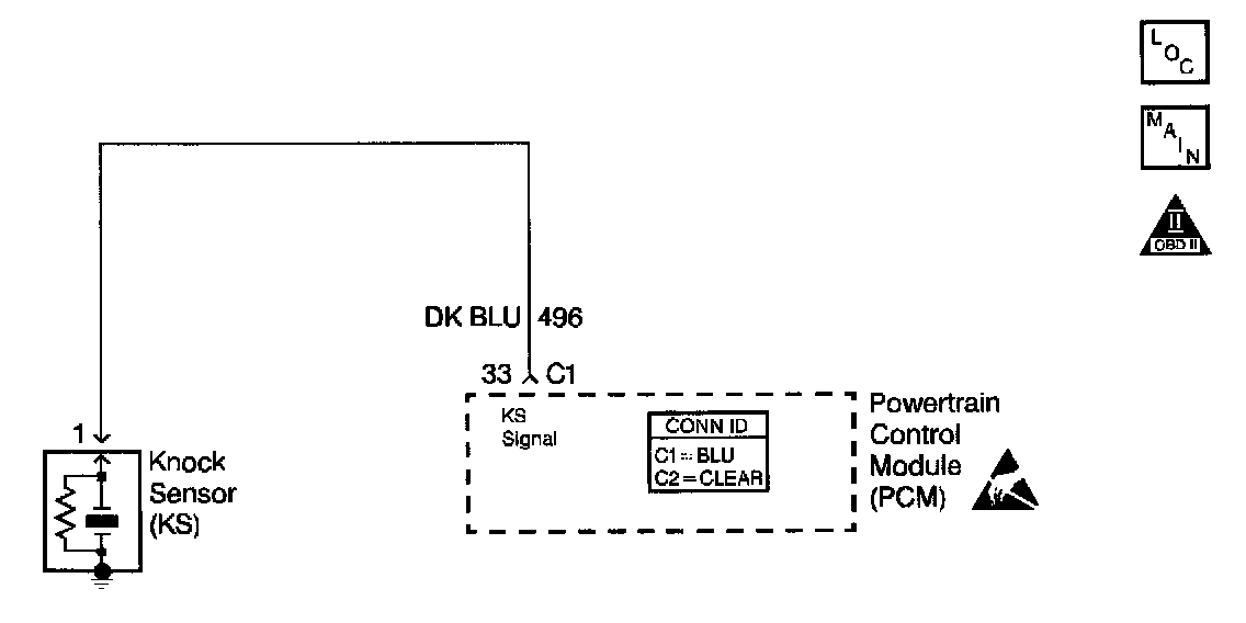 ^ Poor connection at PCM. Inspect Knock Sensor and PCM connectors for backed out terminals, broken locks, and improperly formed or damaged terminals. Refer to Intermittents and Poor Connections. Symptom Related Diagnostic Procedures