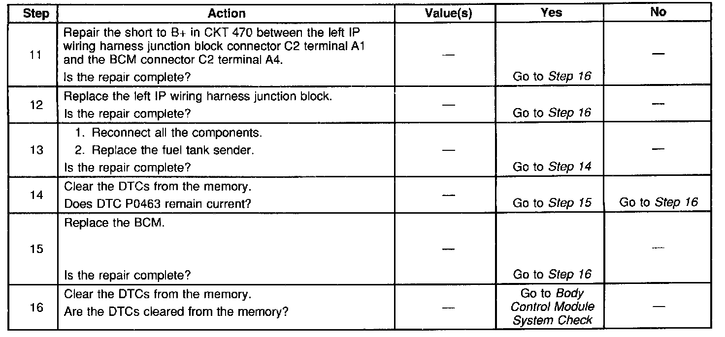 DTC P0463 Fuel Level Sensor Circuit High Voltage (Part 2 Of 2):