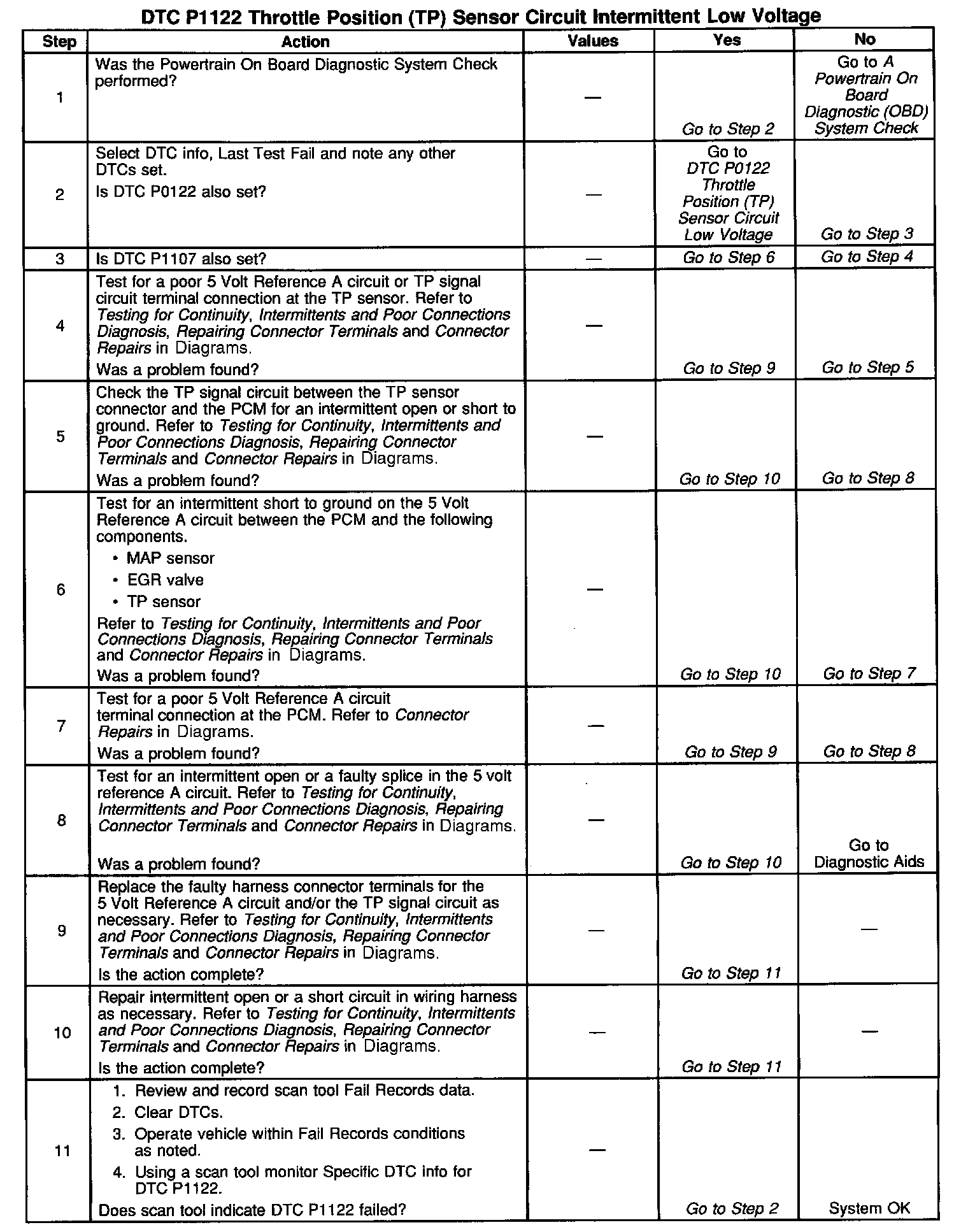 The TP signal is one of the most important inputs used by the PCM for fuel control and most of the PCM-controlled outputs. If the PCM detects a TP signal that is intermittently below the range of the TP sensor, DTC P1122 will be set.
