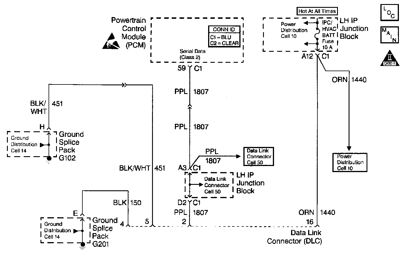 A Class II serial data communications system is used on this vehicle to allow various modules to communicate and share information with each other. This allows vehicle wiring to be reduced and the transmission and reception of multiple signals over a single wire. The messages carried on a Class II serial data streams are also prioritized. If two messages attempt to establish communications on the data line at the same time, the message with the higher priority will continue. The message with the lower priority message will wait. If a module cannot respond to the PCM, a DTC is stored.