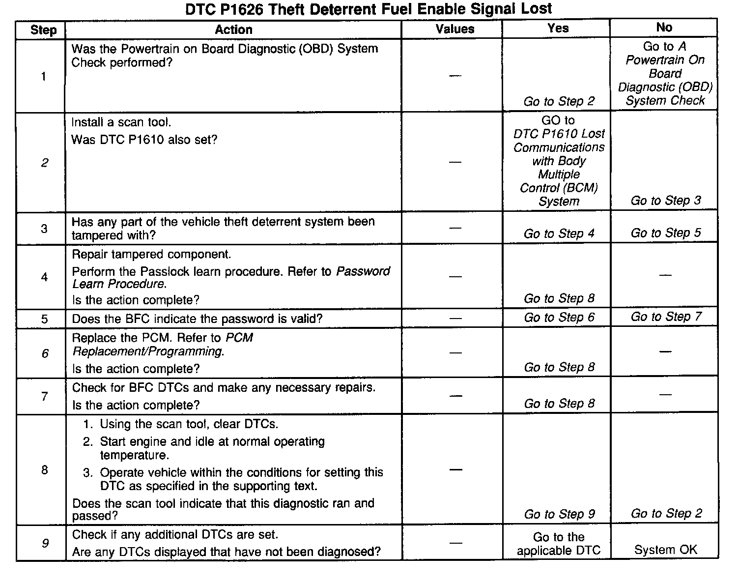 7. If the serial data circuit to the Body Function Controller (BFC) was not open, then the serial communication loss to the PCM lies within the BFC. Refer to Body Function Controller for Passlock diagnosis.