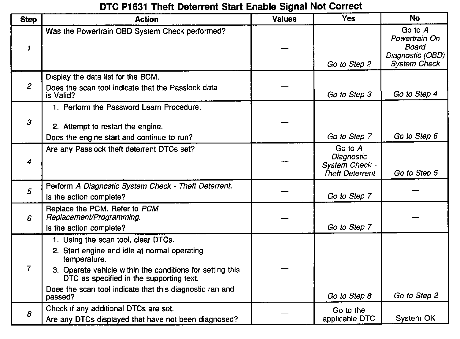 Attempting to start the vehicle by bypassing the theft deterrent system or substituting parts without performing the password learn procedure may set a DTC P1631.