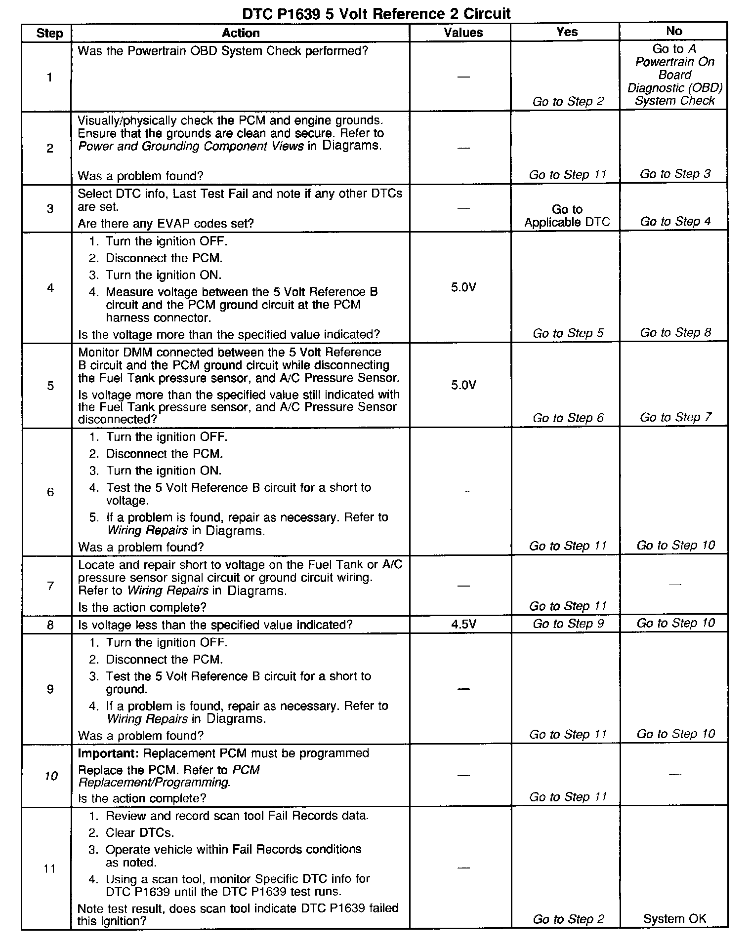 The PCM uses the 5 Volt Reference B circuit as a sensor feed to the A/C Refrigerant Pressure Sensor. The PCM monitors the voltage on the 5 Volt Reference B circuit. If the voltage is out of tolerance, the PCM will set DTC P1639.