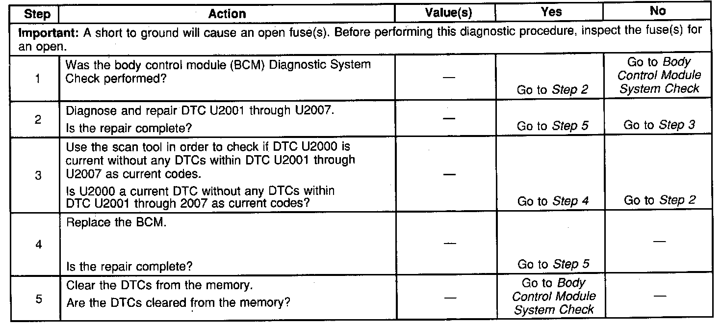 ^ Diagnose DTC U2001 BEFORE diagnosing DTC U2000.