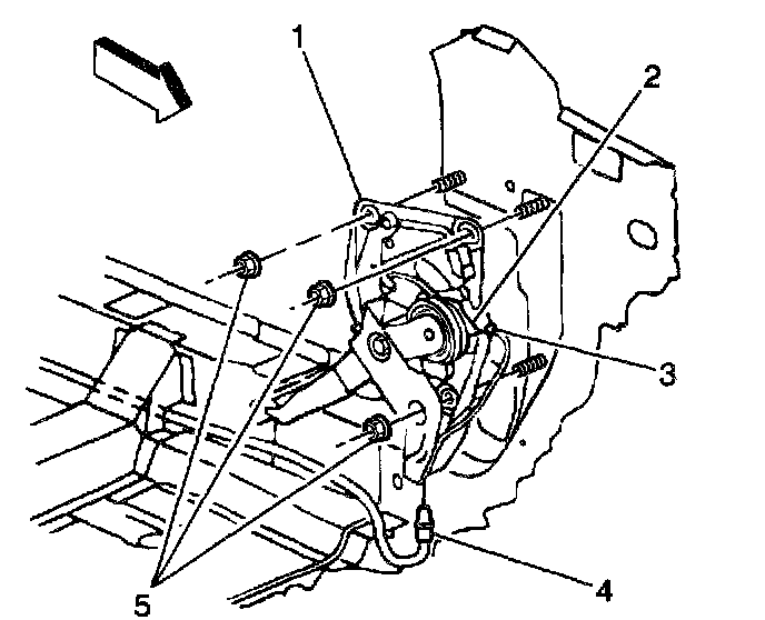 8. Remove the park brake lever nuts (5).