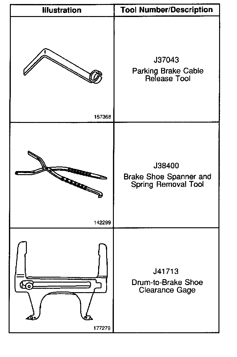 Parking Brake System: Tools and Equipment