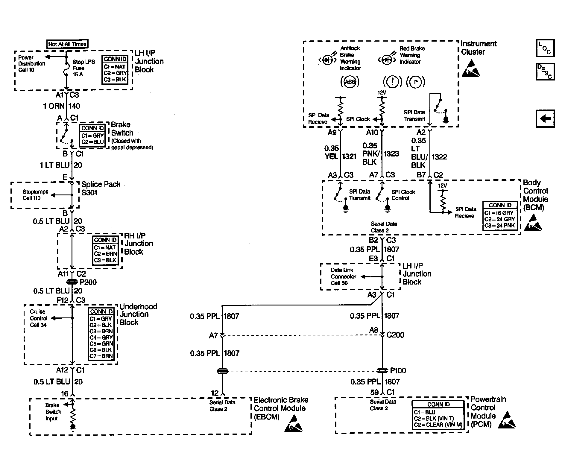 Instrument Cluster, Brake Switch and PCM