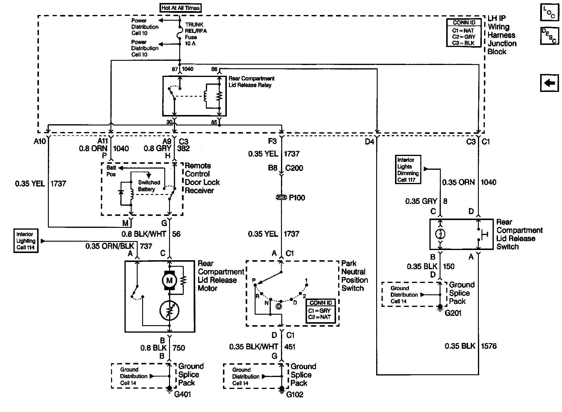 Keyless Entry Schematics: Rear Compartment Lid Release Motor, Switch And Relay: