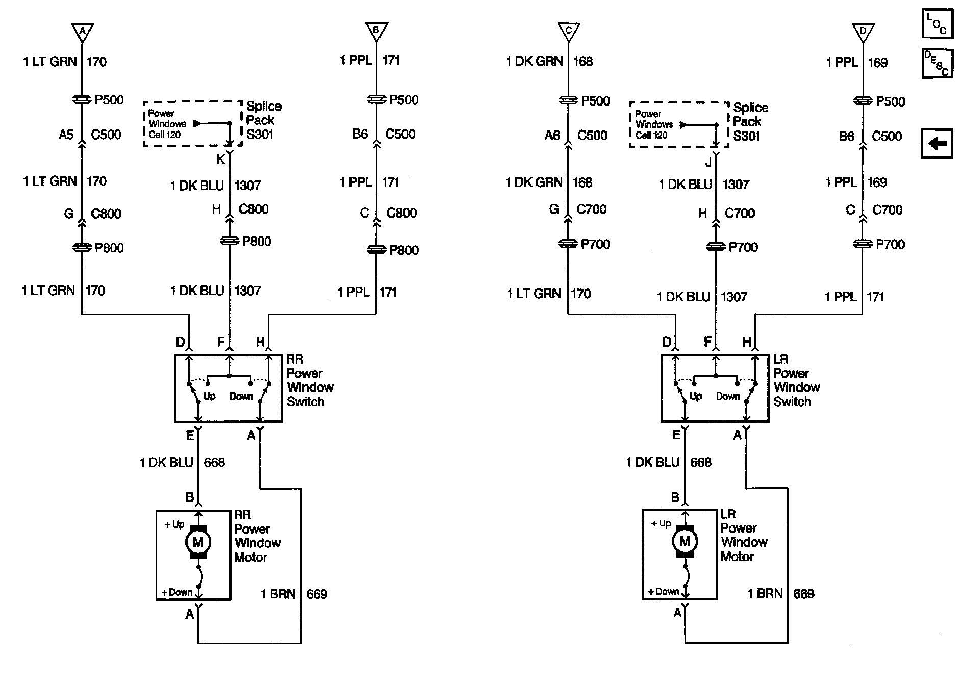 Power Window Schematics: Power Windows, Rear: