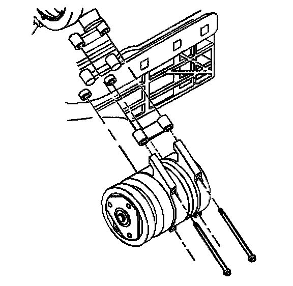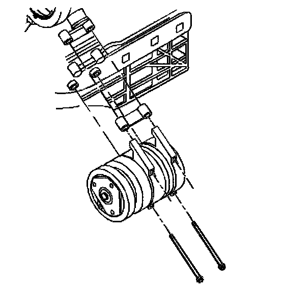 5. Loosen the upper air conditioning (A/C) compressor bolts. Do not remove the bolts.