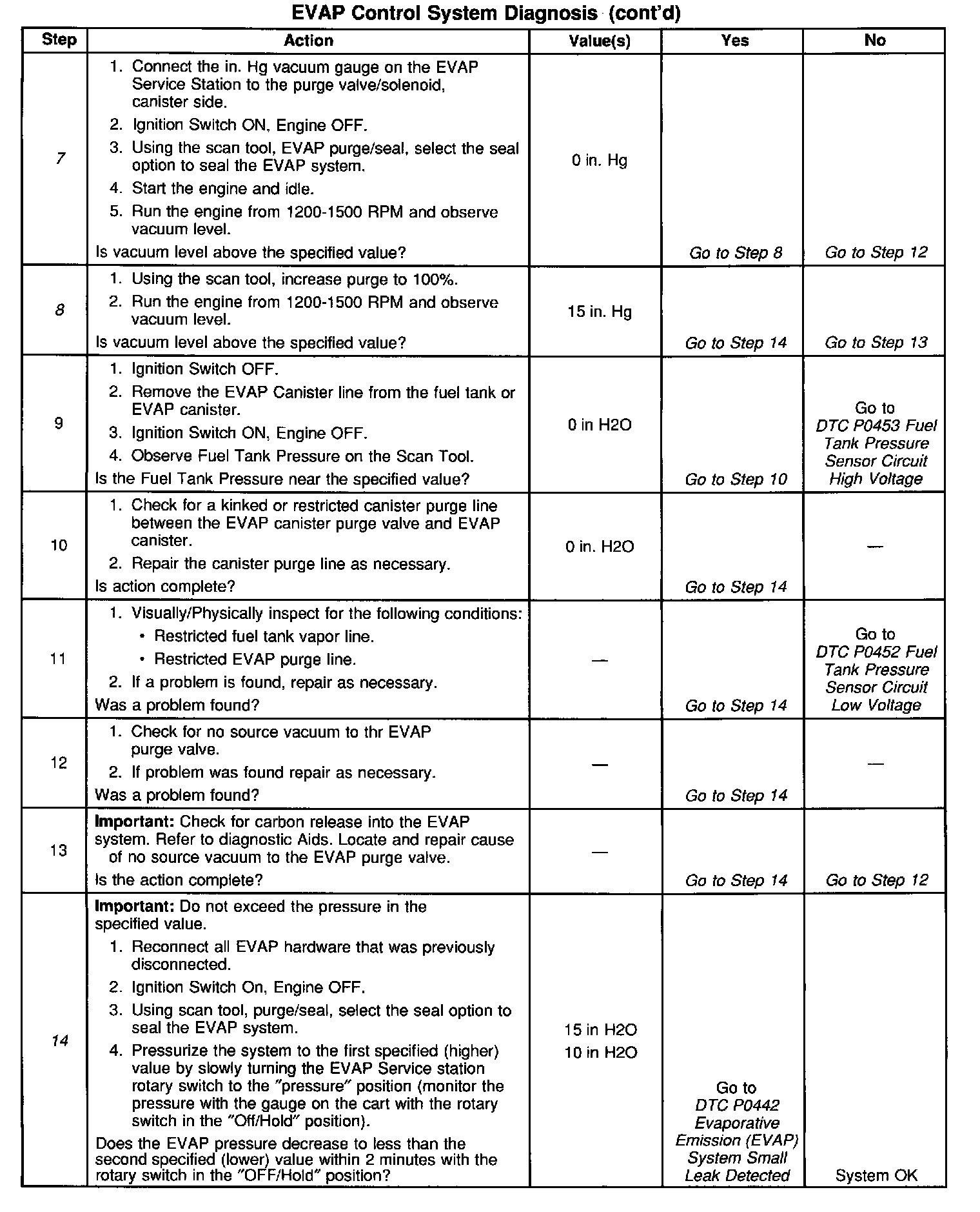 7. Checks for a leaking or stuck open EVAP canister purge valve/solenoid The scan tool should read within ±1.0 in. HG of the specified value.
