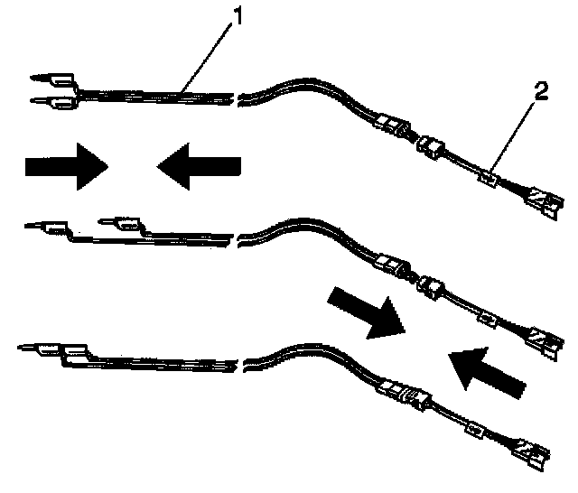 6. Connect the appropriate pigtail adapter (2) to the SIR deployment harness (1).