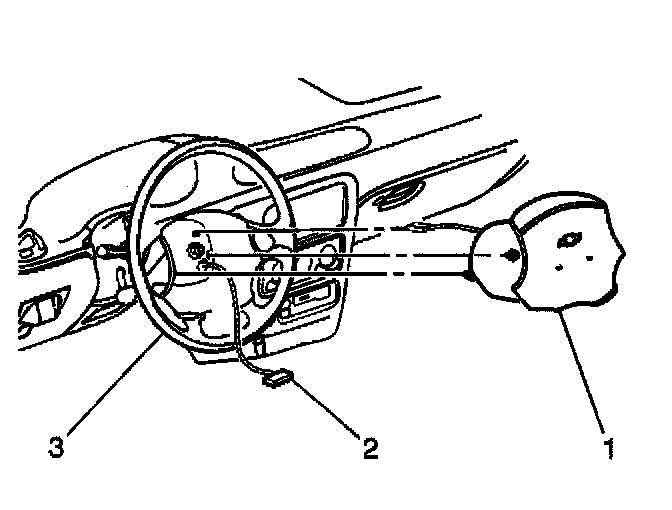 2. Install the inflator module (1) to the steering wheel (3).