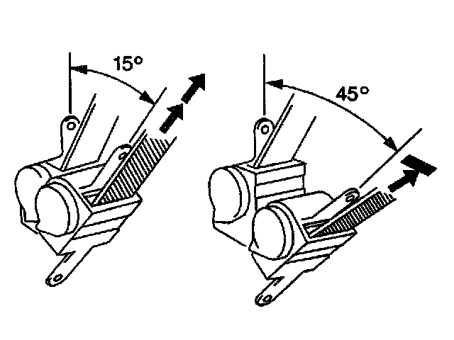 4.3. Ensure that the seat belt webbing can be pulled from the retractor at an inclination of 15 degrees or less and cannot be pulled from the retractor at an inclination of 45 degrees or more.