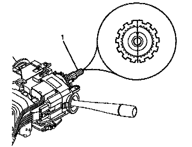 - The block tooth (1) of the steering shaft assembly is in the 12 o'clock position.