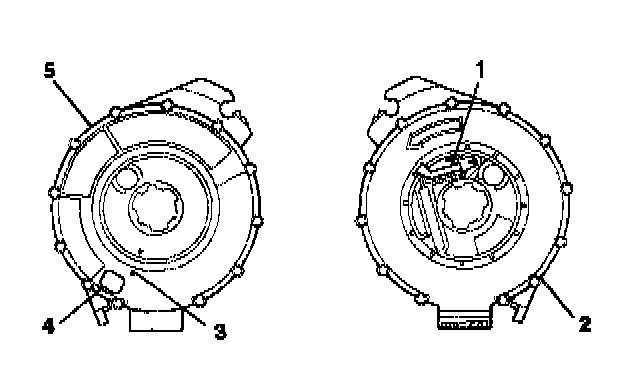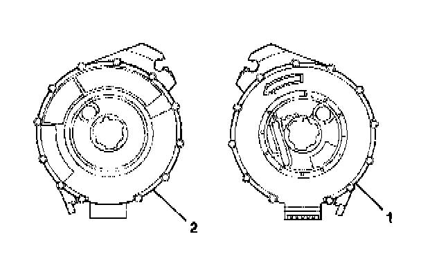 5. For no centering window on the front side (2) of the SIR coil assembly and no spring service lock on the back side (1), perform the following steps: