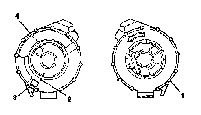 3. If the front (4) of the SIR coil has a centering window (3) and no spring service lock on the back side (1), perform the following steps: