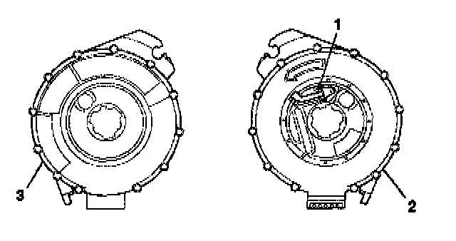 4. If no centering window is present on the front side (3) of the SIR coil assembly, but a spring service lock (1) is on the back side (2), perform the following steps: