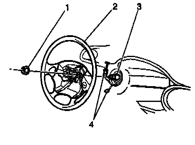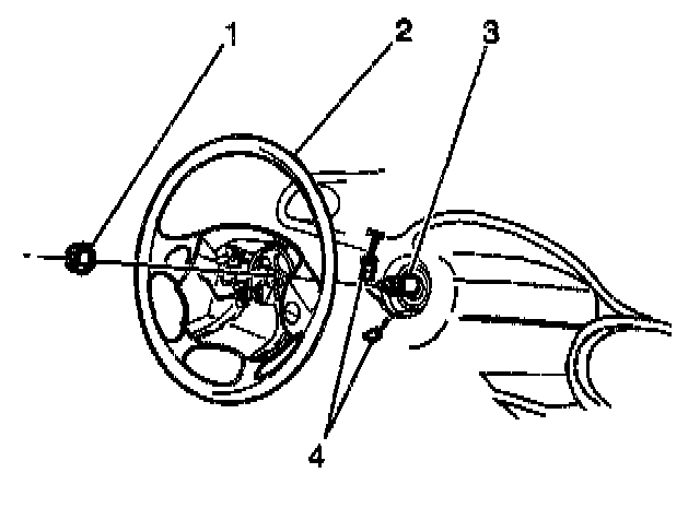 4. Install the steering wheel nut (1) on the steering column (3).