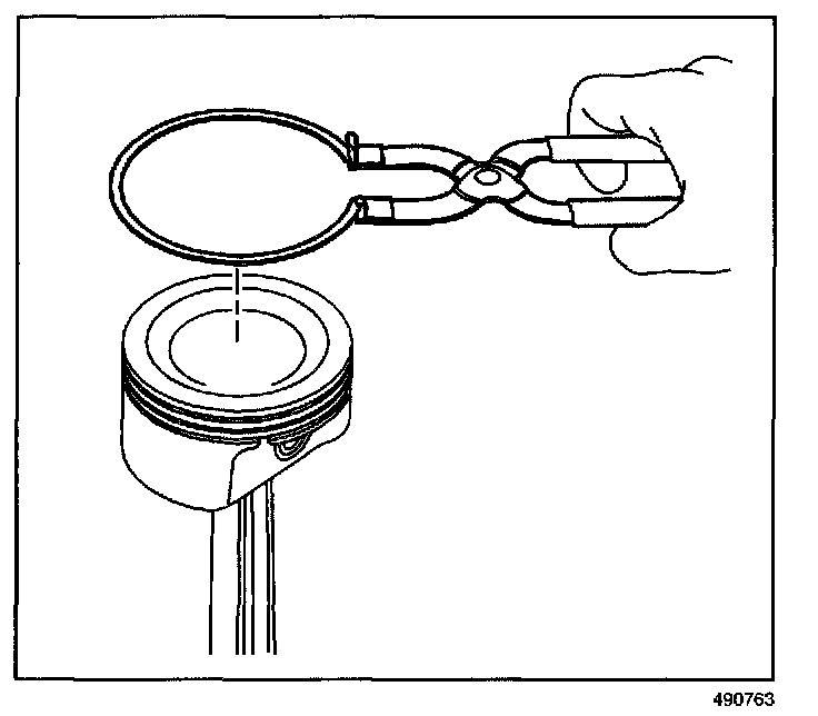 2. Using piston ring pliers, remove the piston rings from the piston.