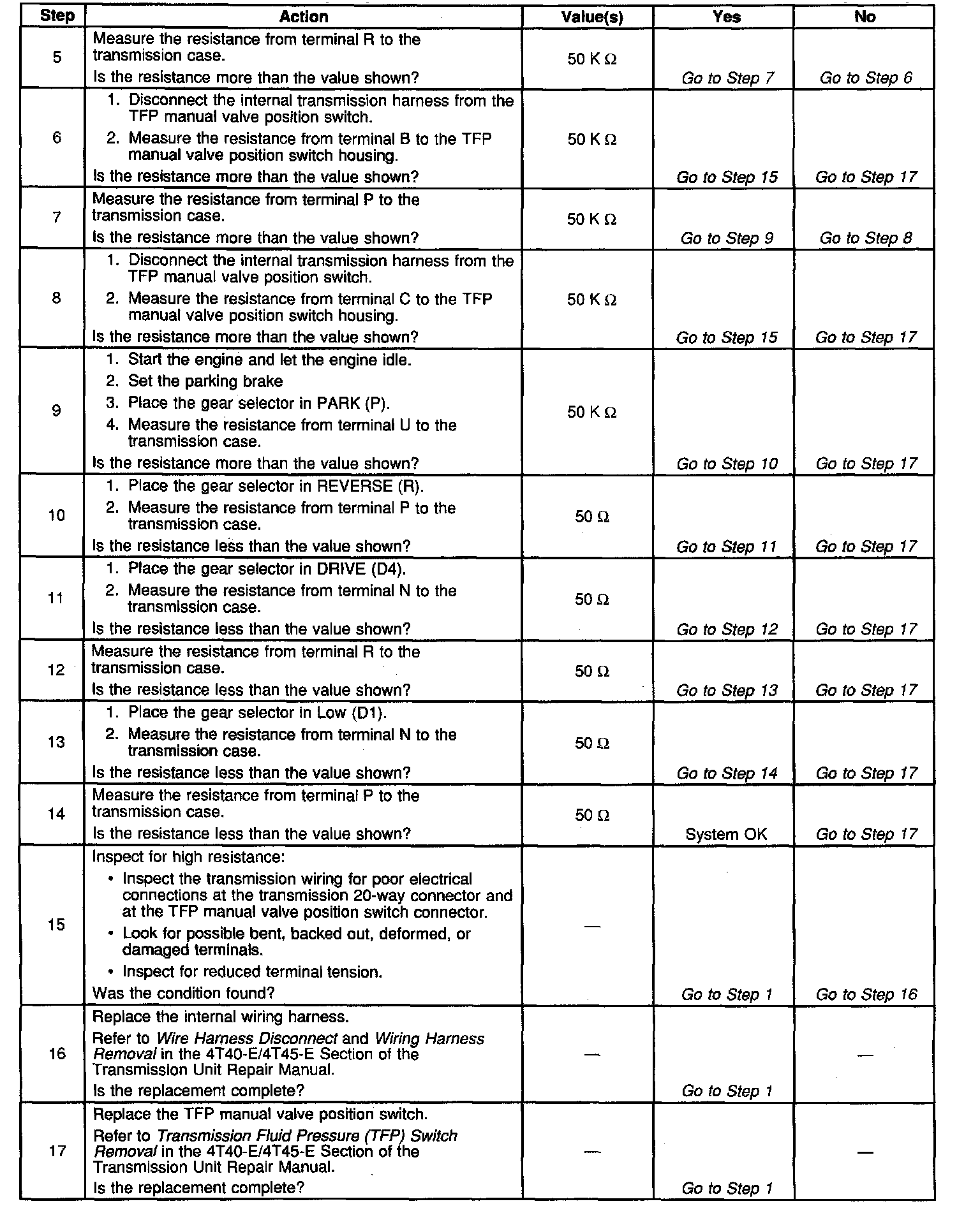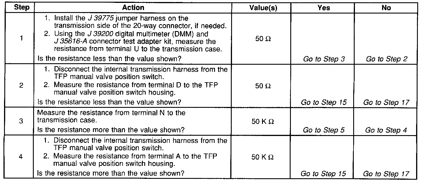TFP Manual Valve Position Switch Resistance Check